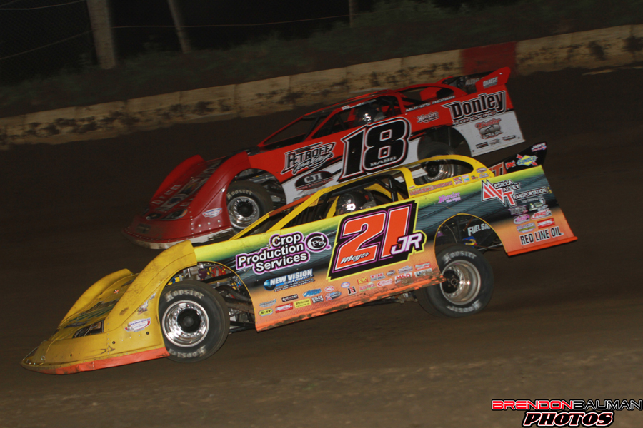 Shannon Babb in the fuel at Jacksonville (IL) Speedway during the 2015 UMP Summer Nationals! -