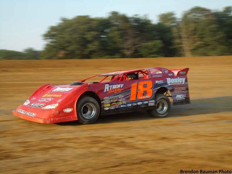 Shannon at speed at the Spoon River (IL) Speedway during the 2011 UMP Summer Nationals - Brendon Bauman Photo