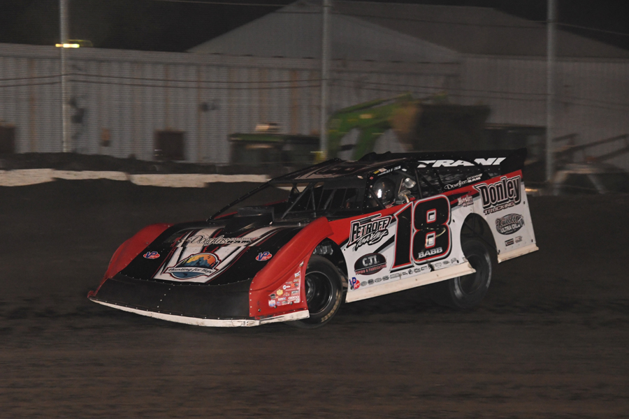 Shannon Babb stands on the gas during 'FALS Frenzy' at Fairbury (IL) Speedway in October 2019 - Todd Healy Photo